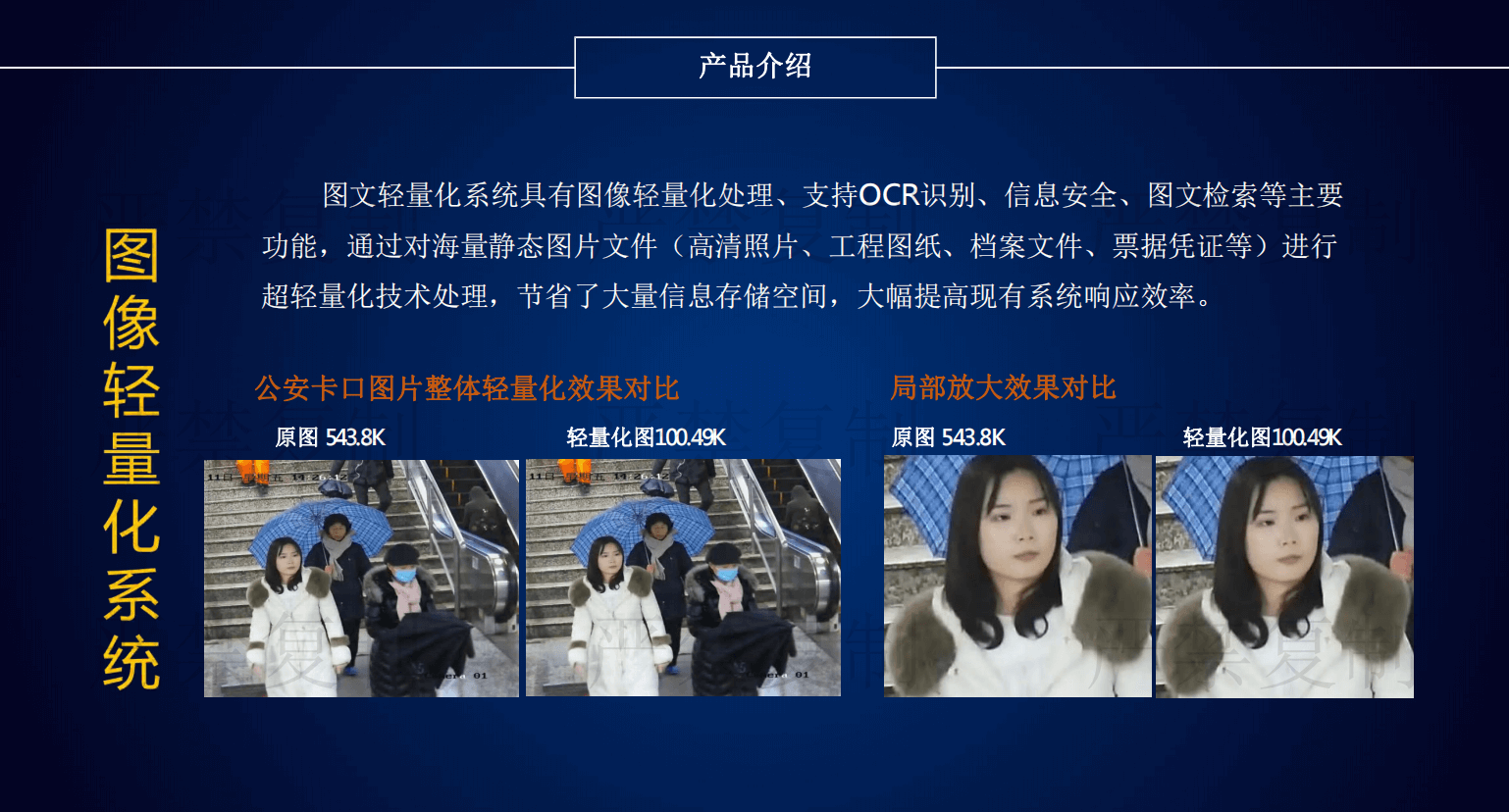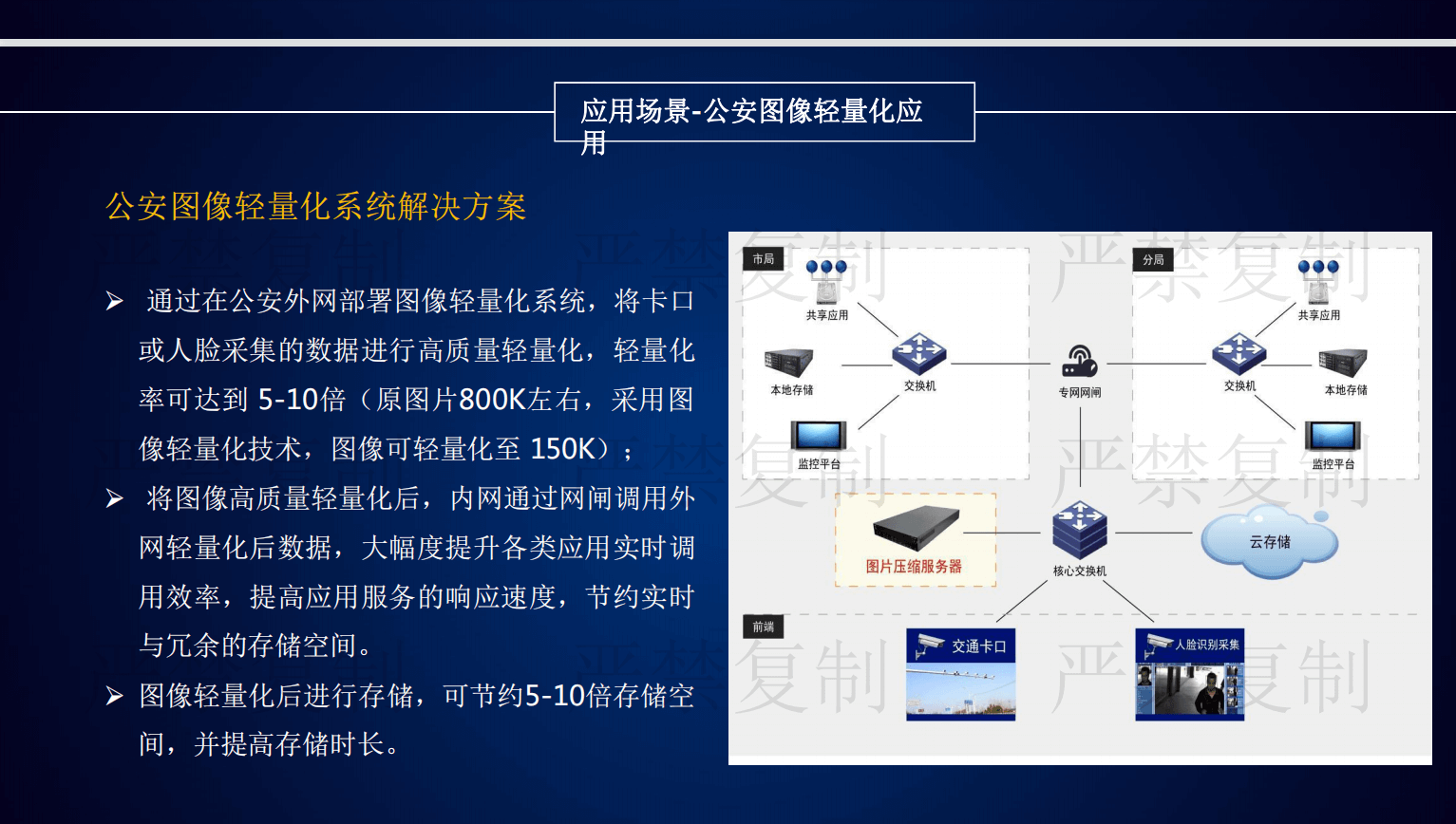 目前安防監(jiān)控領(lǐng)域存在三大痛點(diǎn):第一是海量視頻數(shù)據(jù)存儲(chǔ)導(dǎo)致項(xiàng)目投資成本不斷增加;二是視頻傳輸過程占用大量的帶寬資源;三是增加大量存儲(chǔ)設(shè)備電能消耗提高。由京華創(chuàng)展科技引進(jìn)的視頻圖像輕量化設(shè)備,解決了安防監(jiān)控領(lǐng)域的三大痛點(diǎn),該產(chǎn)品具有六大特點(diǎn):